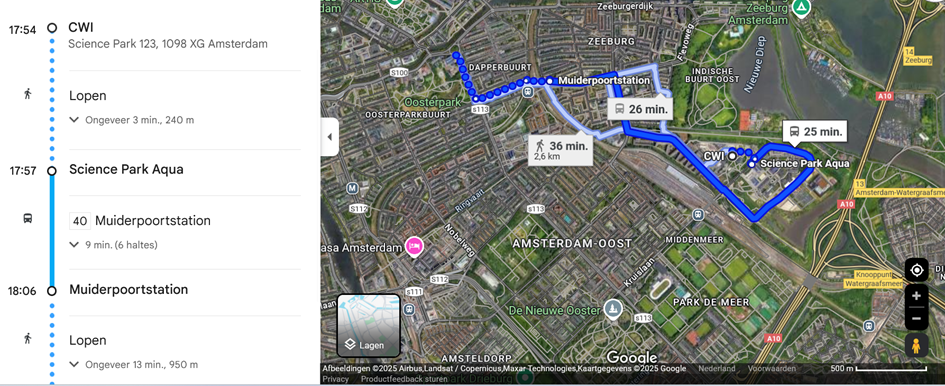 The route from CWI to Tropenmuseum with public transportation
